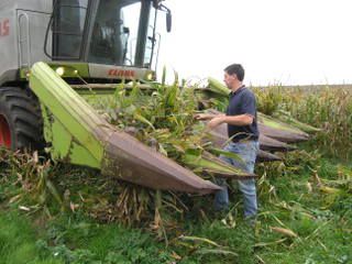 The maize header is now on the combine harvester.