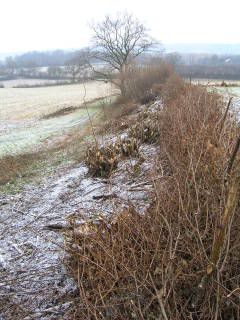 Con O’ Kelly is doing a grand job Hazel coppicing a shaw between two fields nearby. Timber products for hedge laying are being bundled and saved, whilst brash wood (the branched tops) are either being stacked in piles or used to create ‘dead hedging’ at the top and bottom of the bank. Both these techniques will create future habitats for mammals, insects and birds. The dead hedging will also provide a barrier against deer, who will eat and damage the emerging new coppice growth in the spring.