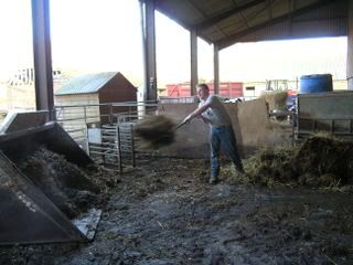 Sam has the slightly smelly job of mucking out barns here at home. He starts by using the Matbro to bucket out the muck, loading into a trailer and the awkward corners must be mucked out by hand. Mucking out is a very important job which I’m sure must come round far too often for Sam, but saves him from going to the gym!