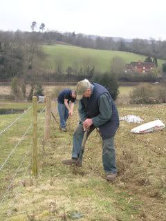 Yesterday Con O’Kelly continued coppicing the Hazel shaw and Dick, Sam and I went hedge planting in Abinger. We have two hedgerows to plant, one is 200m long in Tank Field just above the cress beds and the other will be 400m long at Raikes Farm.