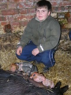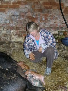 I found an injured piglet unable to walk round to feed alongside the others. I helped the piglet get a good feed and then took it in to warm beside the Aga.