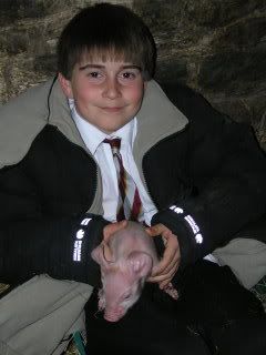 As soon as we arrived home the boys went out to check and feed the pigs but came running back in shouting ‘Phoebe’s having her piglets!’ Phoebe has a litter of nine; four are pink with spots, three are black and white and two are black.