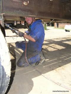 It was William’s last day working for us at Manor Farm and his time here seems to have flown by. William has shown willingness and enthusiasm to his work and always with a smile. Today he was repairing a large trailer in readiness for harvest, one of the most awkward positions for a photo! After a short trip to Scotland, William is returning to his job in the Netherlands where they lift flower bulbs.