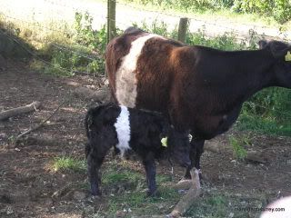 Duchess, a pedigree Belted Galloway we purchased last year, gave birth this morning. I was hoping for a heifer calf which could also have been registered as pedigree and kept as future breeding stock. However the calf is male and therefore will be castrated and raised for beef and sold through my beef box scheme in about two and a half years.