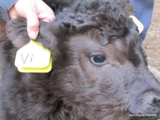 Five cows were due to calve about January time, however we have waited a little longer for ‘Browny’ to give birth as she is always weeks behind the others! On Friday Browny gave birth to a beautiful heifer calf, which looks tiny compared to those which were born on 30th December. On our way back from the funeral, Amanda asked whether I had a name ready for the heifer calf which we needed to tag this afternoon; my immediate response was ‘Vi’.