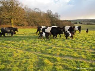 After tagging the calf, this group of cattle were loaded into a trailer and moved to a fresh field south of Hackhurst. Flo the Belgium Blue cow is to the left of this picture with her 'Beltie' cross twins.
