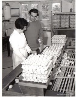 This photo shows Fred with laurel Hobbs in the egg grading shed in the 1970's