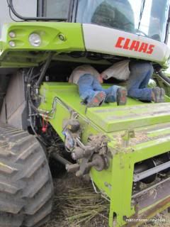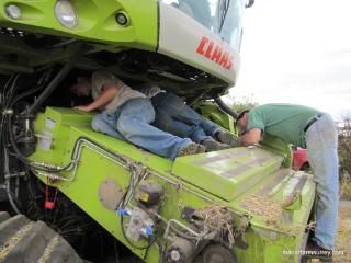 George, David and Laurence spend hours unblocking the combine.
