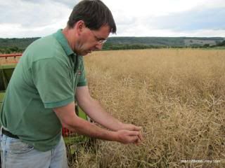 The 300 acres of winter rape drilled in August ’09 should yield more than the spring rape which was drilled in April and will be harvested at the end of August. So far 150 acres of winter rape has been harvested, with a more even crop at Park Farm compared to the fields at Manor Farm. The remaining winter rape isn’t yet fit so last night the harvest moved over to wheat.