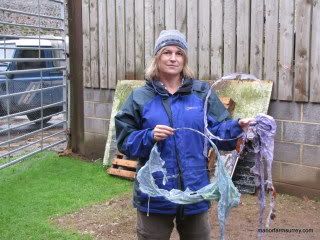 Both were the full wire version; a wire frame with two fine wire cross-pieces. These are terribly hazardous to wildlife and livestock and I hate to imagine the pain and suffering that may have been inflicted on our calves had they found the colourful paper and wire before I did. I was grateful for the rain that afternoon as the calves were curled up alongside their mothers rather than being playful and inquisitive as on a fine day.