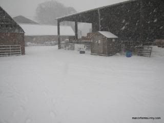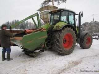 David used the fertiliser spreader to grit slopes and yard entrances to ensure the feeder wagon can access each livestock area. This will also help tomorrow when two lorries arrive on farm to collect grain.