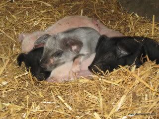 Polly is an Oxford Sandy and Black gilt who was served by one of Percy’s offspring, ‘Spot’. It’s no surprise that Polly’s seven piglets are black, pink and grey as Spot’s mother was black, his father Percy is pink and Percy’s father was a Saddleback which tends to throw grey piglets! The fact that the piglets look nothing like their sandy coloured mother gives rise to many questions from visiting school groups.