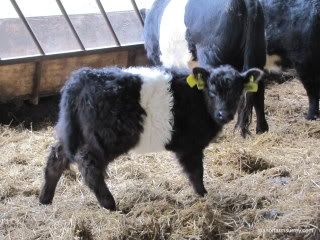 If the belt is good and encircling the calf then it can be registered with the Belted Galloway Society, otherwise it could be sold or will be reared for beef. This is another glitch in the breeding programme which should be increasing our pedigree herd and improving the breed.