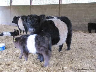 Two calves have no belt at all, they are jet black calves; others have a reasonable band under the tummy which then narrows down to a minimal strip of white hair or no white hair over the back and one of the heifers has four white feet!