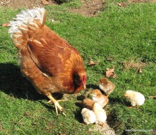 Easter was quiet here with just the surprise arrival of six chicks! One of the hens has sat on a clutch of eggs for three weeks at a secret location somewhere in the garden; I still haven’t discovered where!