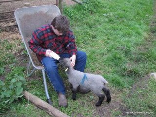 (this is Barny being bottle fed, he was the first born lamb and had entropion or inturned eyelids)