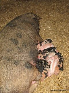 and Polly who quietly farrowed in her arc during Friday night and is taking great care of ten tiny piglets.