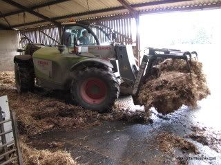As each group of calves moves from the first barn; these are mucked out with the tele-handler and then thoroughly disinfected and limed before being bedded up with fresh straw in readiness for the next calves. We are rearing calves for a neighbouring farmer and some for ourselves.