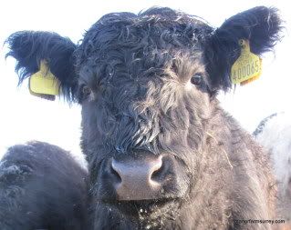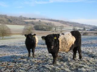 Don’t be confused if you see a Belgian Blue cow (Flo) with the Belted Galloways as she has been with us for a few years now and is a great leader of the group, literally if we need the cows to come in, the others will follow her!