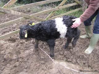 I was sorry to have missed all the excitement but glad to find a healthy calf which I tagged this afternoon, as by tomorrow she'll be racing around the fields!