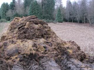 The muck is scraped out of the barn and then heaped in a field until it can be spread.