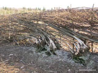 Hazel stakes are positioned along the hedgerow with flexible lengths of Hazel binders woven along the top.
