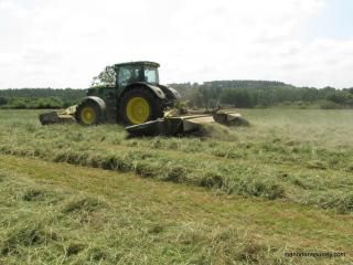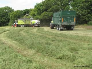 Three years ago we sowed 50 acres of grass for herbage seed. The yields have not been good and the first two years made a loss. Rather than take a third consecutive loss on the seed crop, Laurence made the decision five days ago to get contractors in to make grass silage instead.