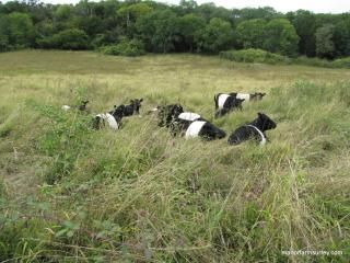 Our Belted Galloway bull Ethelred is surrounded by nine cows as they take life nice and easy on the North Downs overlooking thIis harvest scene.