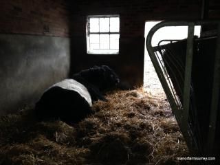 Having visited the pedigree herd of Belted Galloways at Barwise Hall in September, I bought our new bull ‘Barwise Mister M’. Mister M was halter trained which has already come in handy because he seems to prefer to be led compared to Ethelred who tends to walk on in front.