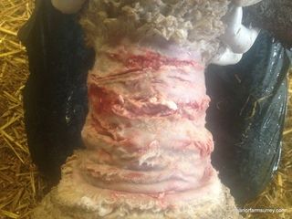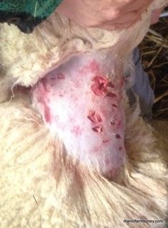 It took almost four hours to sort through the sheep with the vet, a painstaking ordeal, shaving the fleece off carefully and slowly to expose the wounds which as seen below were a chopped up mess. The wounds were flushed with disinfectant and each animal given pain relief and antibiotics to try to prevent infection.