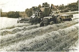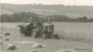 After the Second World War Edward (EDG) Matthews harvested the arable crops with a horse drawn reaper (later pulled by a tractor) and after drying in the fields for 2-3 weeks the grain was separated from the straw with a threshing machine located at West Lane.