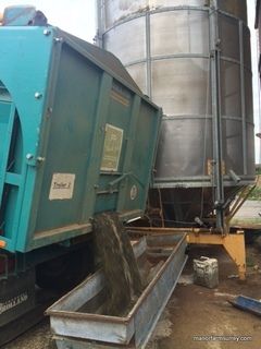 The oilseed rape has been coming off the fields at 6-10% moisture content and it needs to be below 9% moisture content before it can be stored or sold off farm, therefore the oil seeds are being dried in the Mecmar drier before being augered into the grainstore.