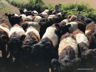 On Tuesday the 32 Beltie yearlings were walked off Blatchford Down, along the track to the barns at Hackhurst, from where we could load them into the livestock trailer. Two loads were transported up to Steers field and the Brow on Ranmore; from here they will have an amazing view across the Weald towards the South Downs!