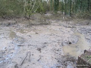 The water is no longer pumped up to the farm house, but it still flows from the railway line into the pond area, bringing with it an accumulation of silt.