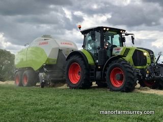 Laurence had arranged for a trailer-full of round hay bales to be unravelled around the ring. The hay was subsequently collected up by the baler, producing rectangular bales in front of a packed audience. There was a moment I held my breath, hoping that the demonstration would go according to plan and I’m pleased to say that it was really successful and packed with interest and information about farming in Surrey. I hope that everyone enjoyed it.