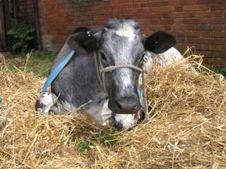 Maisie, the cow that lost her calf last Friday, is resting in the yard, eating and drinking well, but lacking the strength to stand unaided at the moment. Each day she is lifted up, with the support of straps attached to the Matbro. The vet thinks it could be ten days before she heals enough to get up onto her feet.